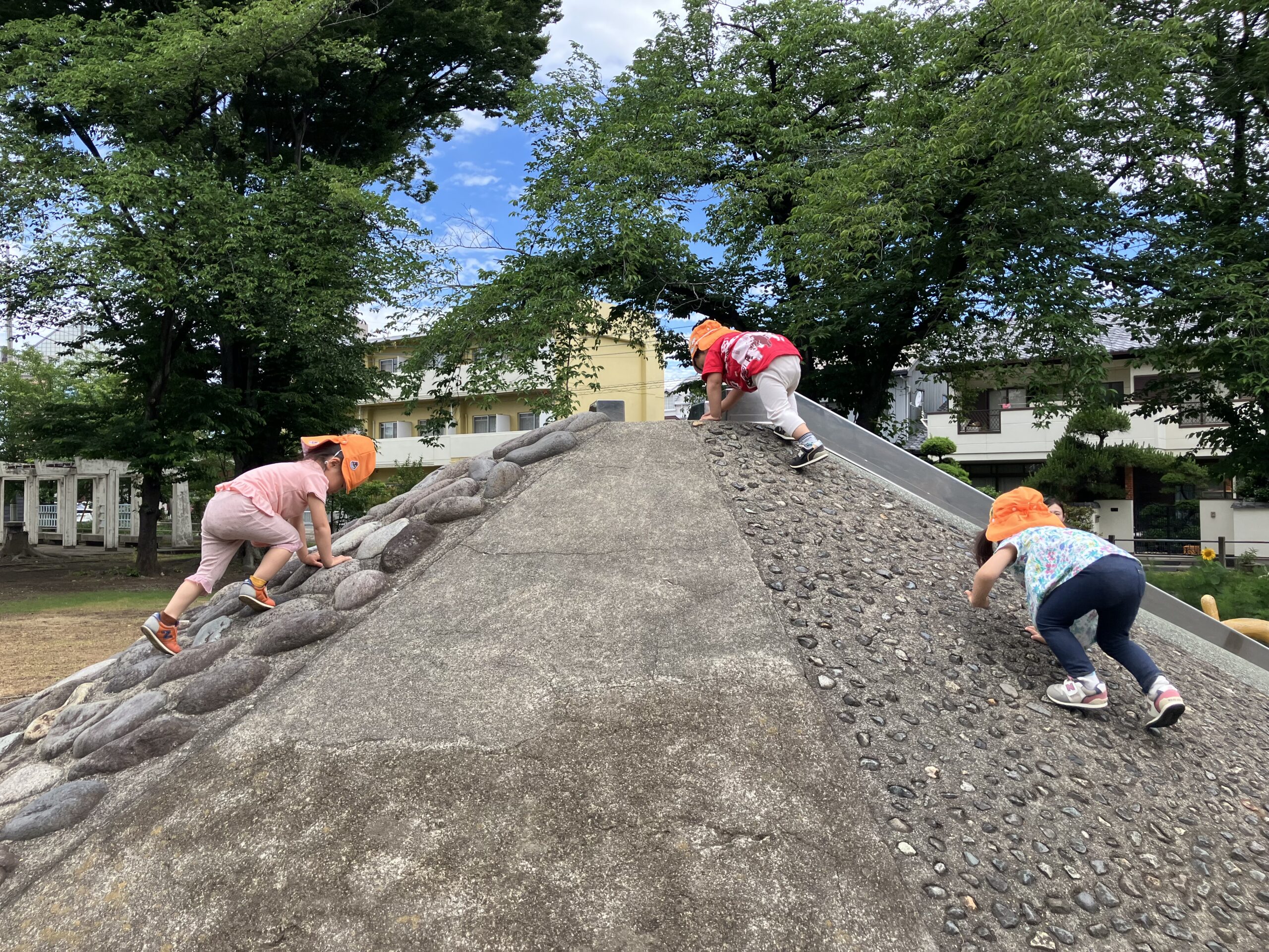 それぞれの特徴に応じて、こどもたちに人気があります。砂場やすべり台・ジャングルジムや鉄棒で遊んだり、広い芝生を思い切り走り回って楽しみます。桜や椿を見たり木の実を拾ったりといった季節ごとの自然に触れ合うことはもちろん、昆虫にも触れ合ったり、電車や消防車を見に行ったりいろんなことをして毎日飽きずに楽しく過ごせます。